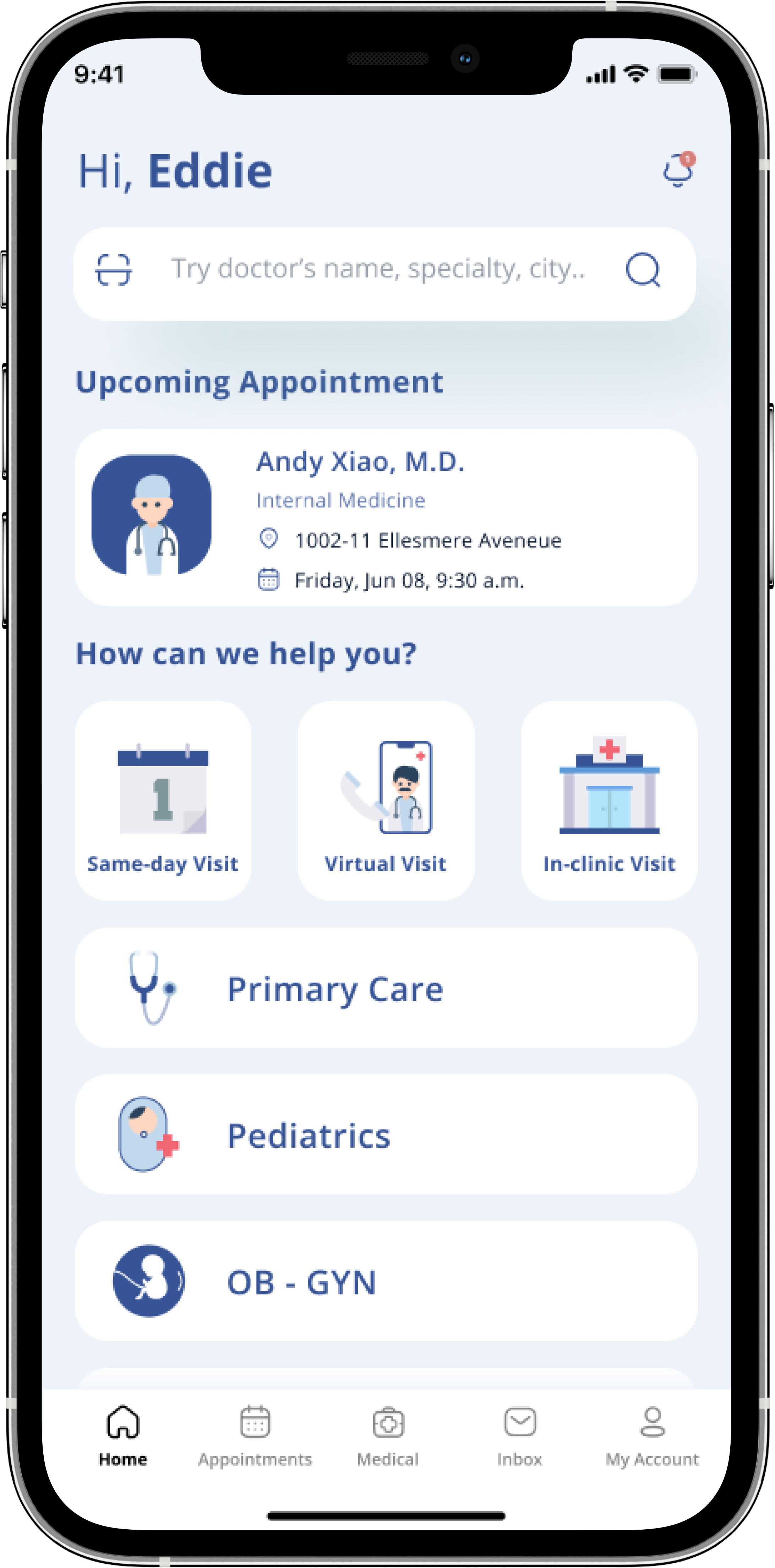 Find a provider and schedule office visits and telehealth appointments.