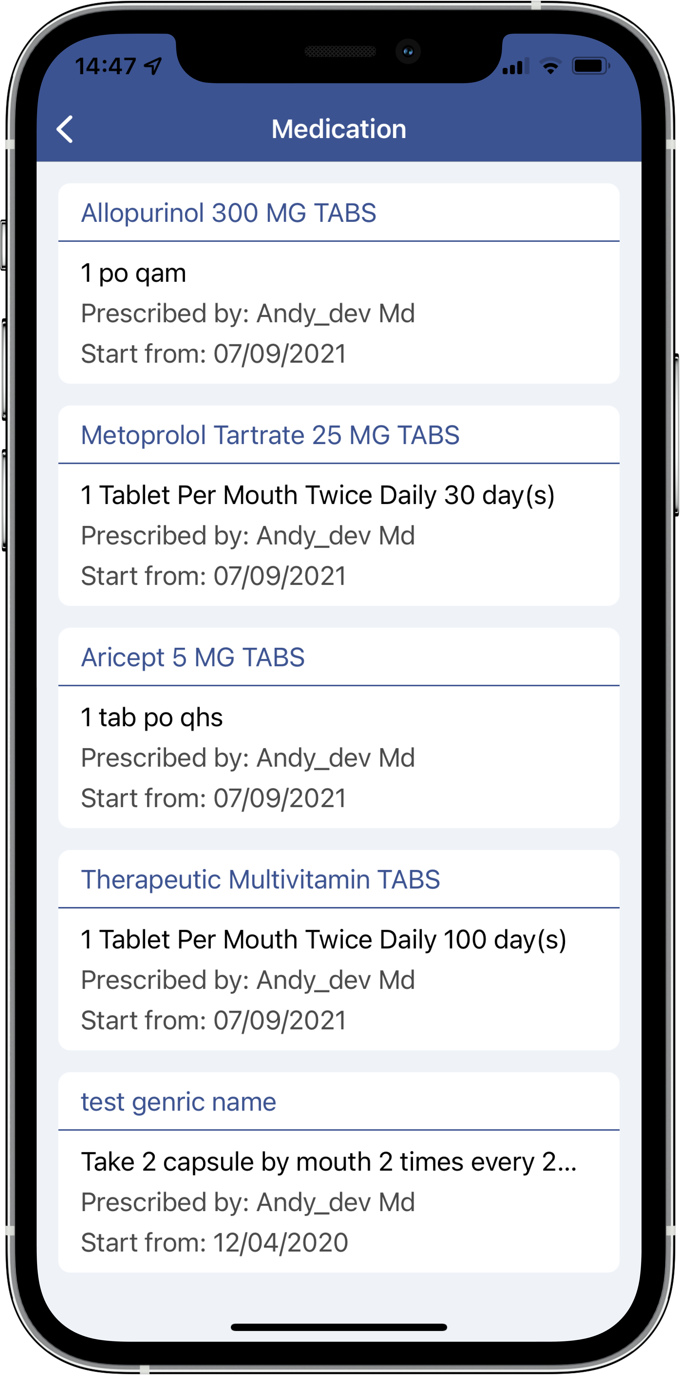 View active medications and request medication renewals.