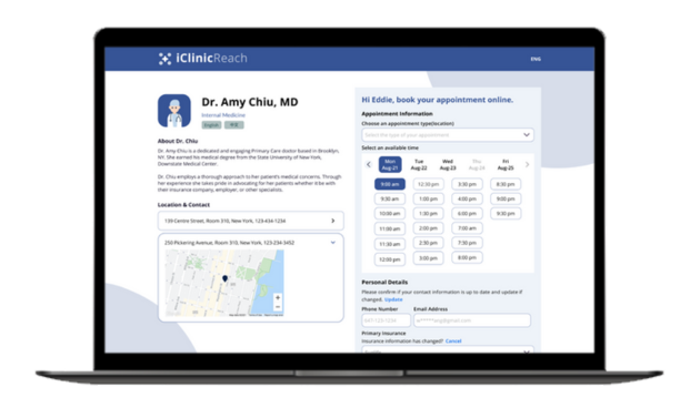Patients can self-schedule appointments with one website link, reducing the time from the administrative team to schedule appointments on the phone. Once patient scheduled, your iClinic® calendar will sync automatically. Customers increasingly prefer online scheduling at their convenience, and it reduces administrative burden while increasing additional appointments to fill in gaps.