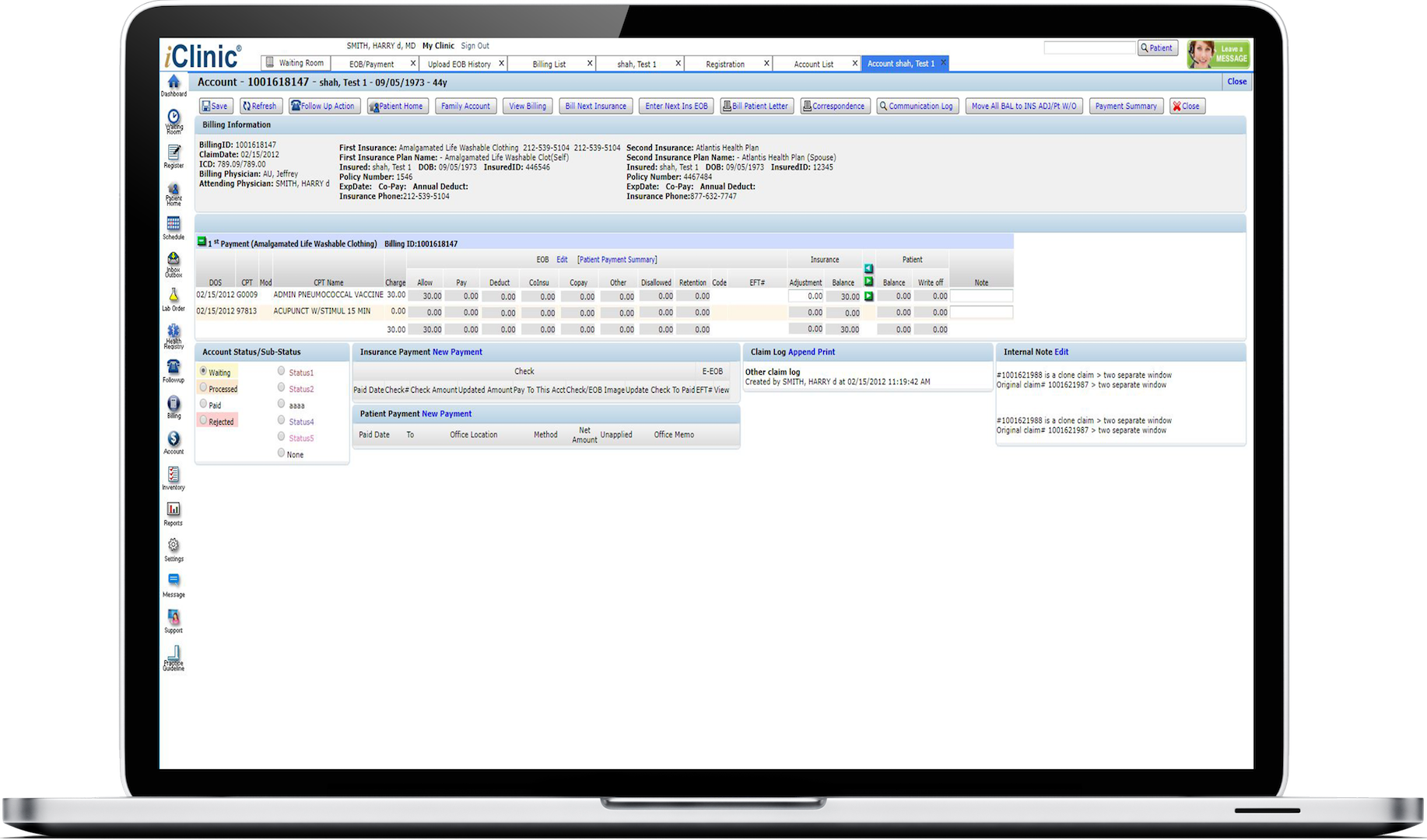 The powerful iClinic® claim processing engine allows you to electronically submit claims to almost any payer and plan in the country. You will receive instant claim status updates and payments will be electronically posted on your account - on an average of 1 to 2 weeks.