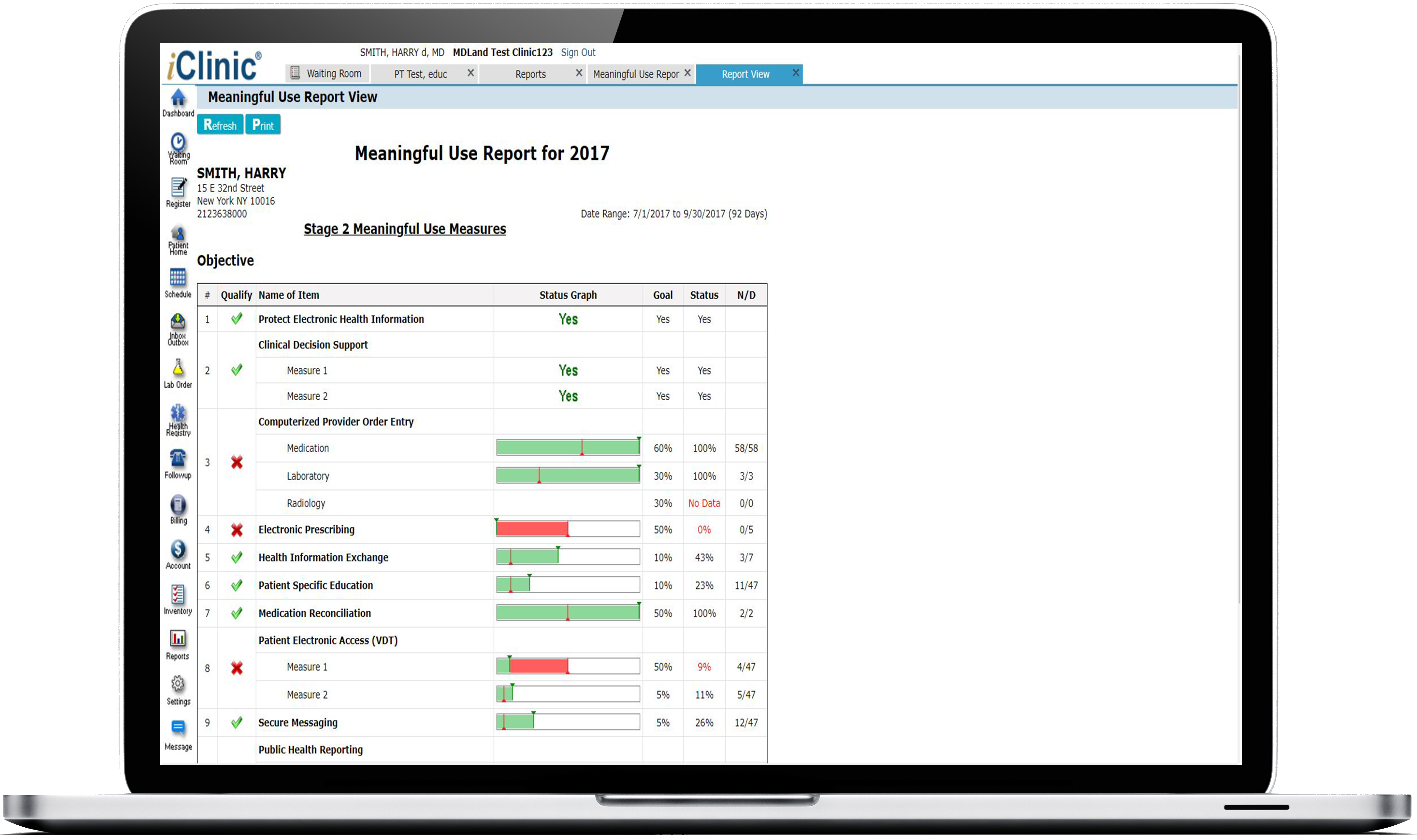 MDLand is proactively taking the lead to achieve both federal and state requirements toward MACRA/MIPS and meaningful-use. Without alternating your existing workflow and adding extra administrative burdens, the iClinic® EHR captures information at the point of care and contributes it to the appropriate clinical quality measures.